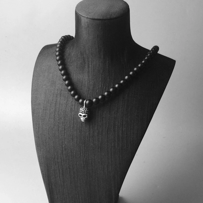 Discover the Obsidian Bead Necklace and Skull Pendant – Unisex